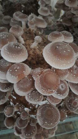Shiitake-mit-üppiger-Fruchtung    Shiitake-geerntet        Shiitake-im-Trockenschrank