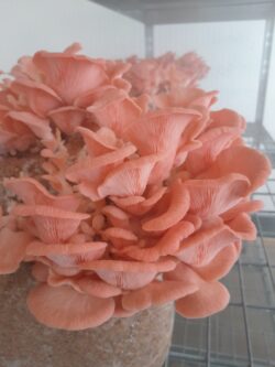 Austernpilze-auf-dem-Block      Austernpilze-geerntet