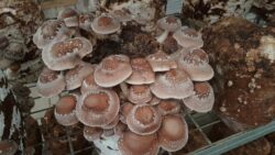 Shiitake-mit-üppiger-Fruchtung    Shiitake-geerntet        Shiitake-im-Trockenschrank